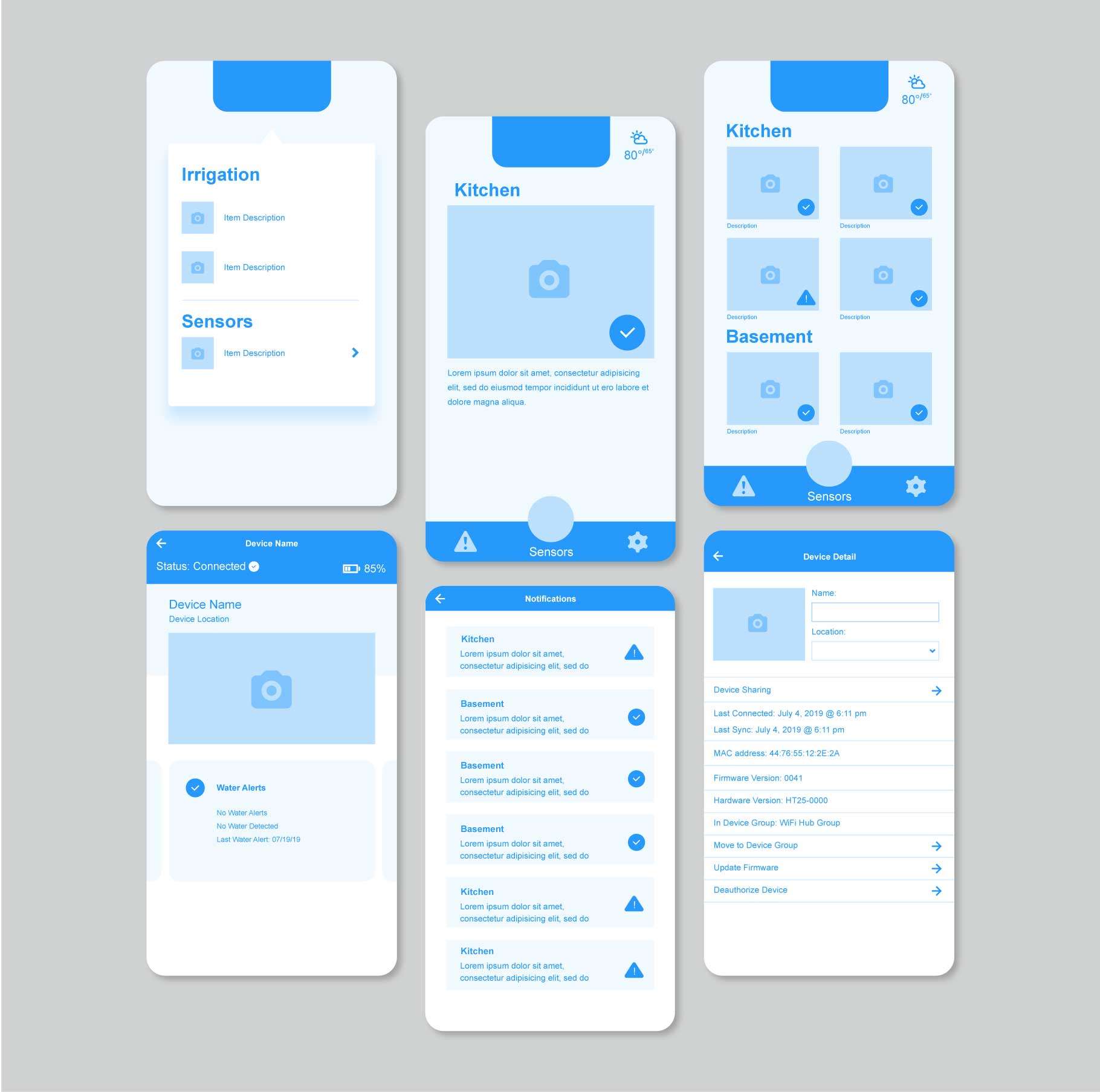 The goal was to add the flood sensor with its own onboarding process—separate from the irrigation features—while keeping everything easy to navigate. We focused on creating a simple, intuitive flow by designing a new dashboard and settings using wireframes, mockups, and high-fidelity prototypes that blended familiar UI elements with new ones for the flood sensor.